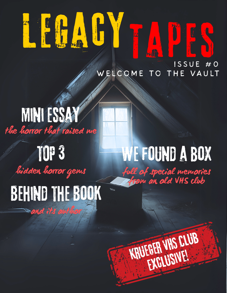 Legacy Tapes is a retro zine straight out of the dusty VHS era—blending horror, action, childhood memories, and all the weird pop culture that shaped us. Each issue is a nostalgic time capsule packed with personal essays, VHS gems, fictional club records, and twisted reflections on the films, stories, and moods that haunted our living rooms and rewired our brains.